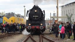Vor dem Lokschuppen sonnten sich unsere Diesellok 114 774 und die Dampflok 50 3682