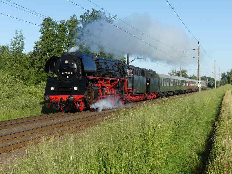 Ein Highlight der Veranstaltung soll die Anwesenheit der Schnellzugdampflok 01 0509 sein, die der Pressnitztalbahn gehört. Die Lok war zwischen 1968 und 1976 in Wittenberge stationiert und beförderte seinerzeit unter anderem die Schnellzüge zwischen Berlin und Hamburg. Hier ein Foto der Lok von Heiko Stumpp aus neuester Zeit: