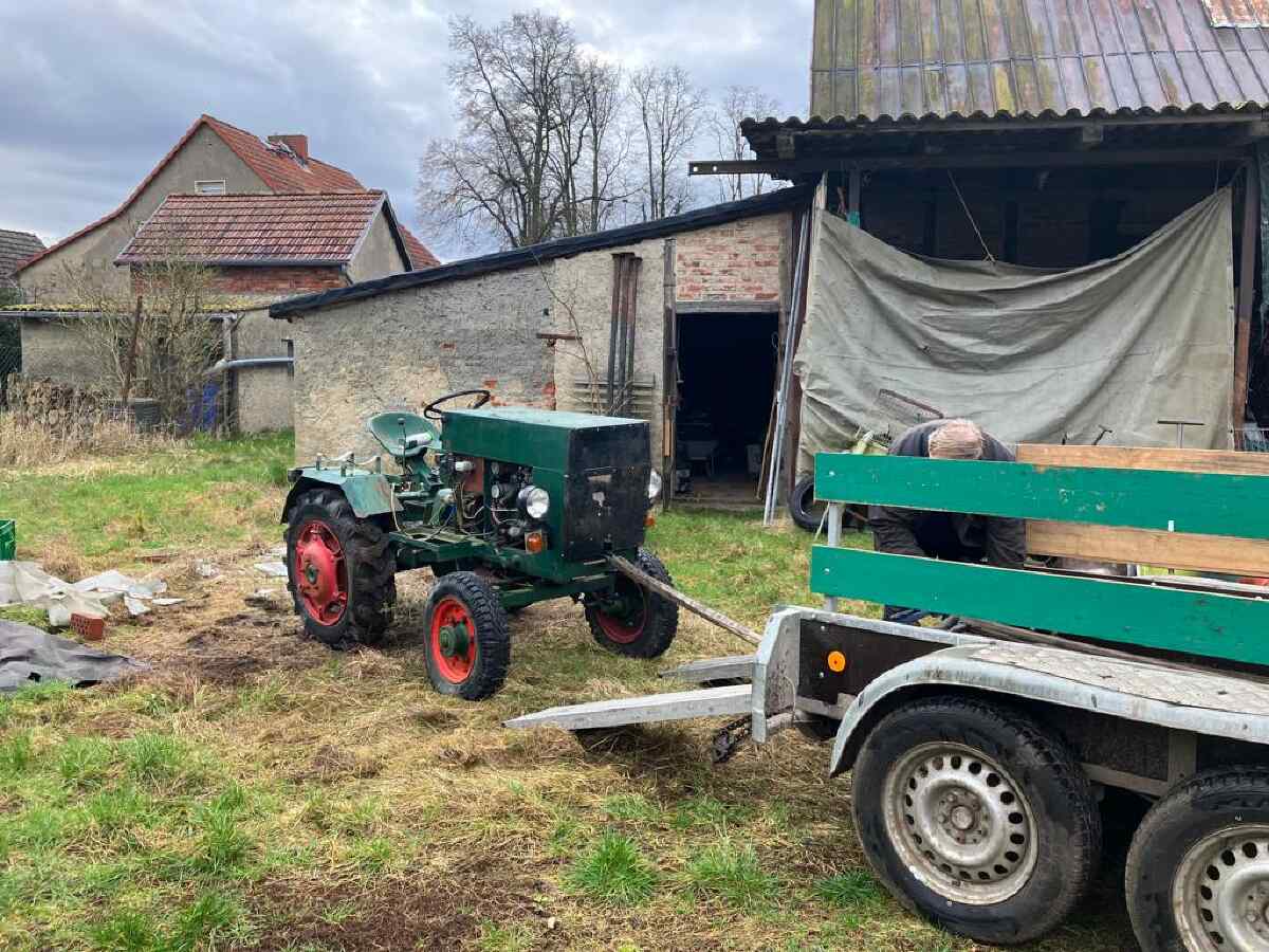 Einen Zuwachs verzeichnet auch unser Bestand an Straßenfahrzeugen. Ein Mitglied hatte bereits zu DDR-Zeiten einen kleinen Traktor aus verschiedenen Bauteilen selbst gebaut. Das robuste Fahrzeug wurde nun ins Museum gebracht, um uns bei größeren Transportaufgaben zu unterstützen