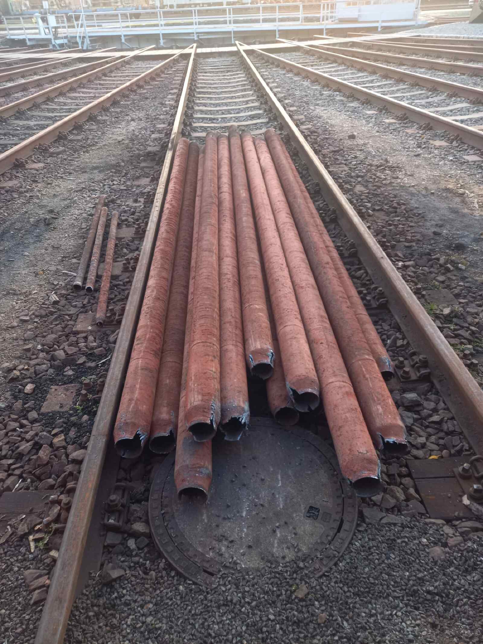 An den vergangenen Wochenenden widmeten wir uns mit Hochdruck den Arbeiten am Kessel unserer Dampflok 50 3570. Wie schon berichtet, sollten alle darin befindlichen Rohre ausgebaut und durch neue ersetzt werden. Diese Arbeit ist langwierig und dreckig und so freuen wir uns, dass diese Arbeiten nun abgeschlossen sind. Die heutigen Bilder zeigen einige Schnappschüsse von den Arbeiten. Zunächst ging es darum, die Rohre aus ihrer Verankerung zu lösen und dann aus dem Inneren des Kessels zu ziehen. Das kostet nicht nur Arbeit und Schweiß, sondern auch jede Menge Sauerstoff und Acetylen für die Schweißbrenner. Zu bedenken ist, dass die Rohre ziemlich schwer und unhandlich sind. Sie wiegen zwischen 40 und 80 Kilogramm, je nach Durchmesser. Man muss also schon bei Kräften sein, um die Arbeit zu absolvieren. Dafür schmeckt das Getränk zum Abschluss umso besser und man braucht nachher garantiert nicht mehr ins Fitness Studio.
