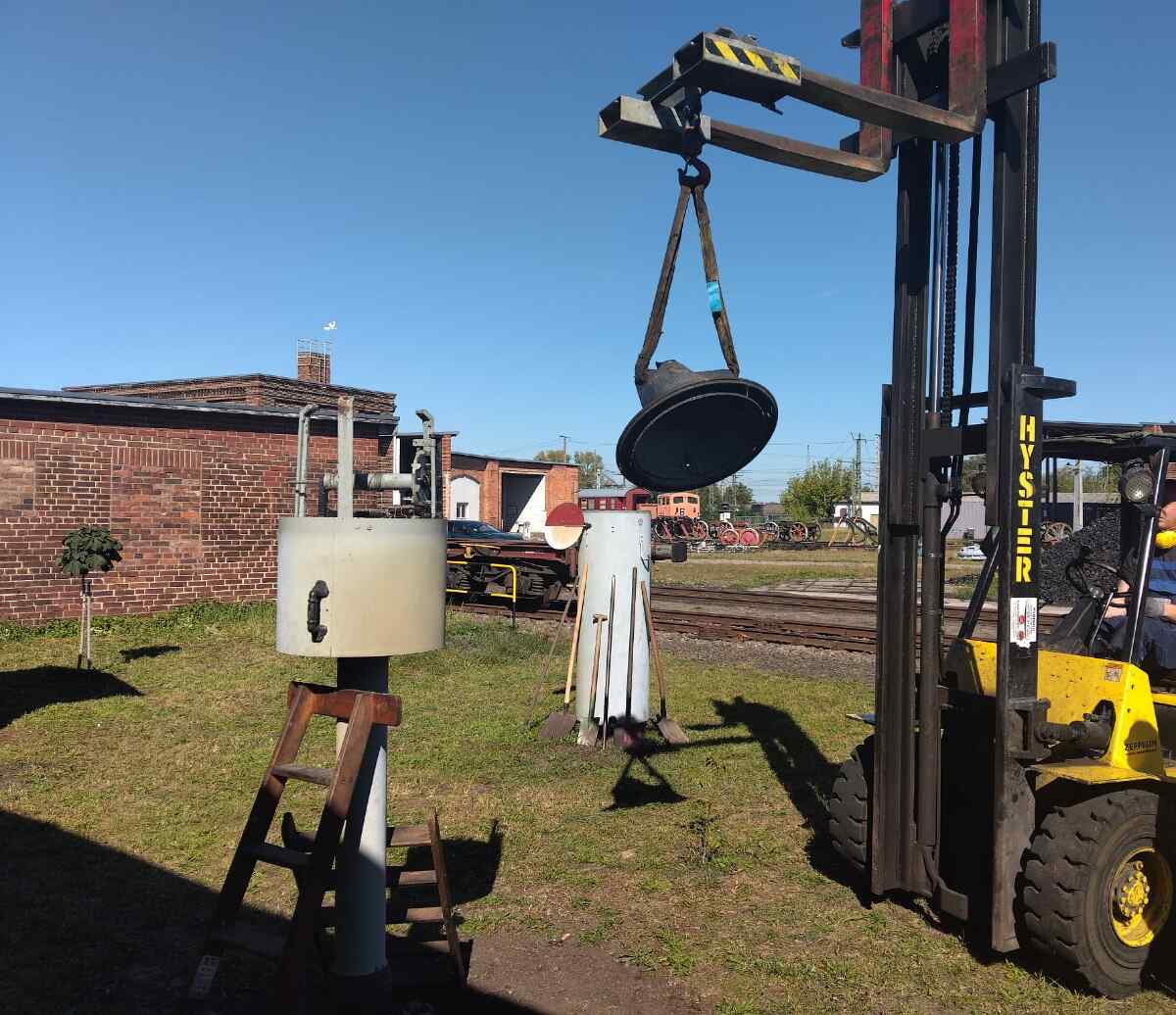Heute können wir auch über eine weitere kleine Sensation berichten. Zwar ist leider der bekannte Stendaler Fachbuchautor und Eisenbahnliebhaber Wolfgang List vor einiger Zeit verstorben. Wir konnten uns aber mit der Familie dahingehend verständigen, dass unser Museum die umfangreiche Sammlung von Läutewerken übernimmt und ausstellt. Dabei handelt es sich um diverse, teilweise telefonzellengroße Geräte, die vor der Digitalisierung der Eisenbahn der Meldung von ankommenden und abgehenden Zügen per Morsezeichen dienten. Wolfgang List hatte solche Anlagen aus etlichen Teilen Deutschlands vor der Verschrottung bewahrt und in seiner Privatsammlung funktionsfähig restauriert. Nun bekommen die Teile in Wittenberge ihren würdigen Platz. Wir danken den Angehörigen noch einmal sehr herzlich für ihre Bereitschaft, uns die Sammlung zu übergeben. Wir haben vor einigen Tagen mit der Aufstellung der großen Ausstellungsstücke in unserem Freigelände begonnen.