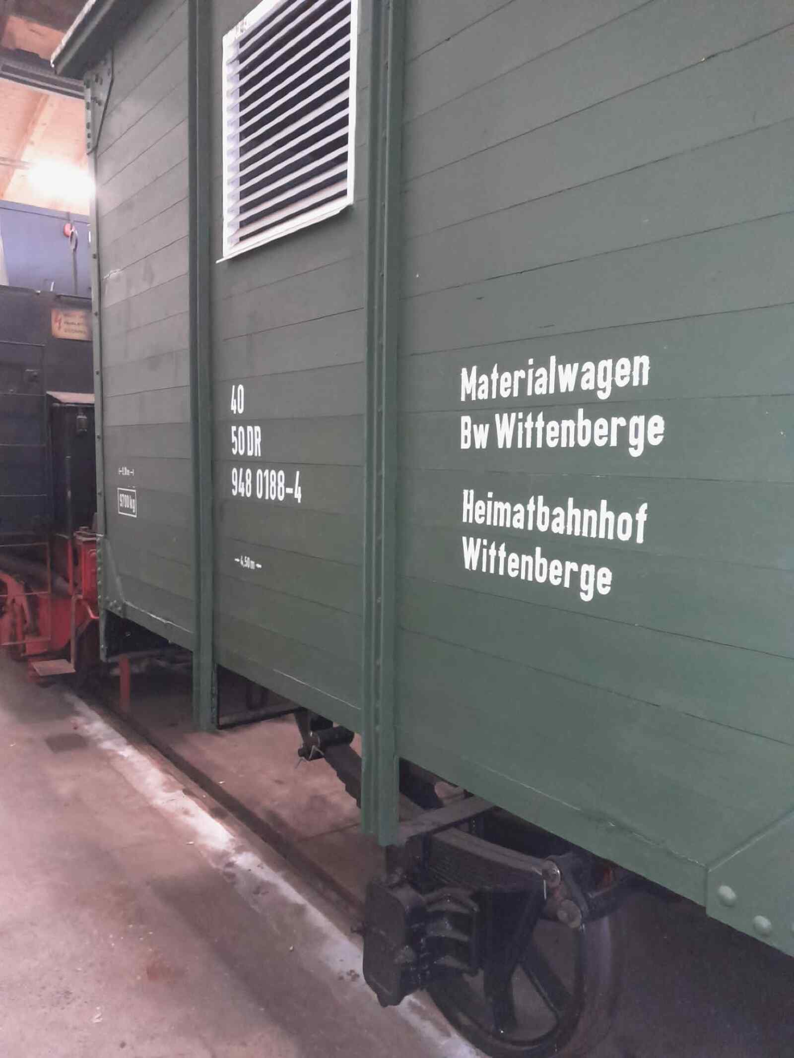 Abgeschlossen sind außerdem die Arbeiten an unserem Güterwagen der Gattung G10, den wir in den letzten Jahren bis auf sein Gerippe zerlegt hatten. Er ist nun wieder zusammengebaut, hat eine neue Schiebetür erhalten und ist neu lackiert. Der krönende Abschluss war vor Kurzem das Anbringen der Beschriftung. Wir präsentieren ihn künftig als Materialwagen des Bahnbetriebswerkes Wittenberge. Solche Wagen wurden früher für den innerbetrieblichen Transport innerhalb von großen Depots oder Ausbesserungswerken der Bahn verwendet, u.a. auch in Wittenberge.