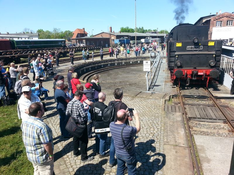 Natürlich gab es Mitfahrgelegenheiten nicht nur im modernen Triebwagen der Potsdamer Eisenbahngesellschaft, sondern auch die alten Dampfrösser schnauften am Wochenende auf dem Gelände des Lokschuppens.