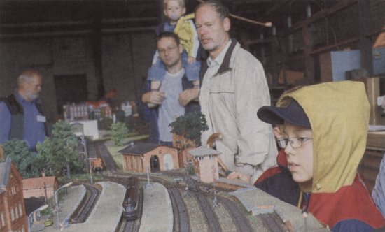 Große und kleine Lokomotivenfreunde bestaunen die fahrende Modelleisenbahn. |